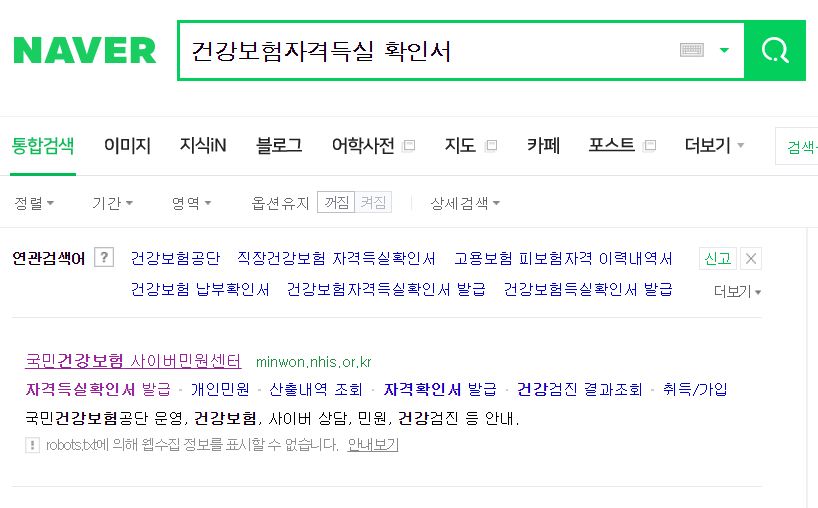 또다른 방법으로 포털사이트에서 '건강보험자격득실 확인서' 라고 검색하면 됩니다.