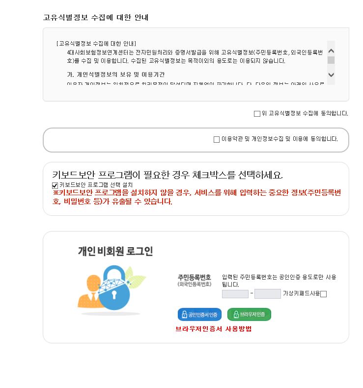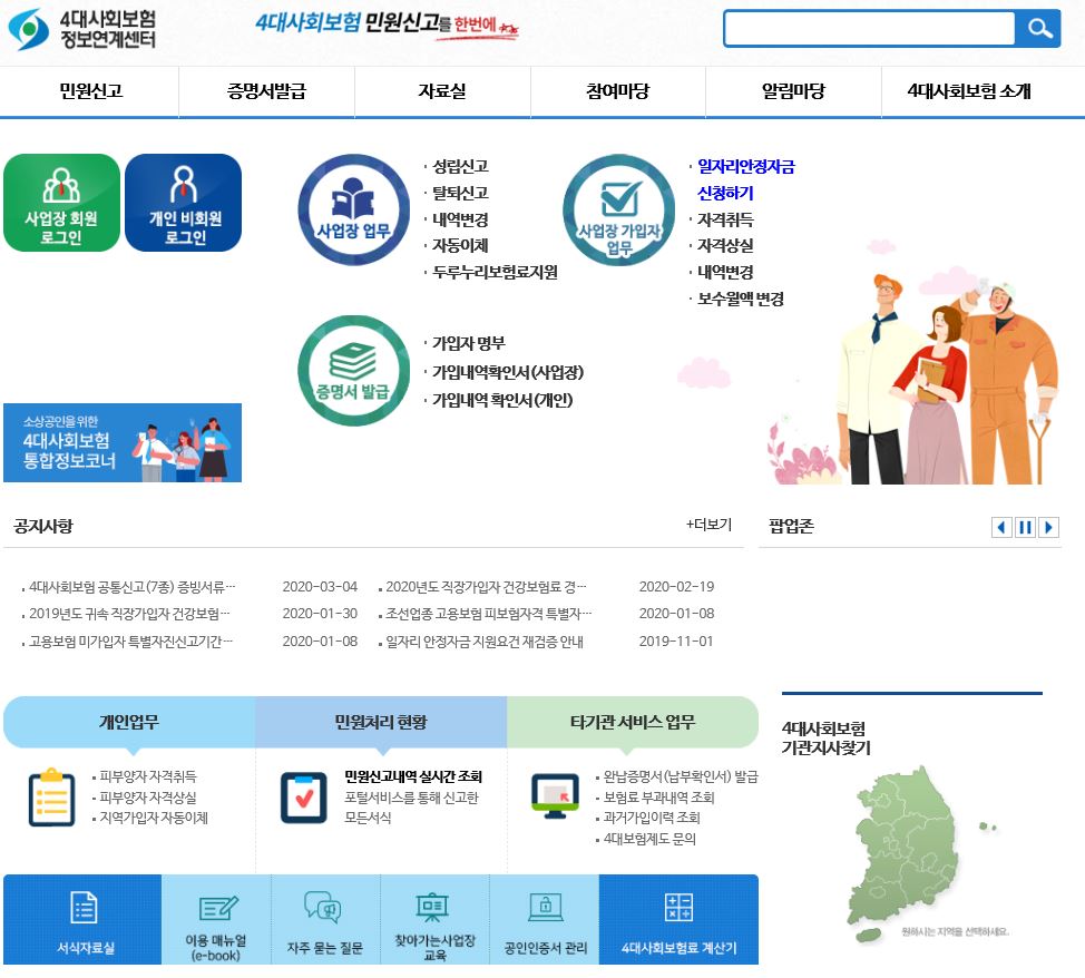 아래 링크를 클릭하면 4대사회보험 정보연계센터로 이동합니다.