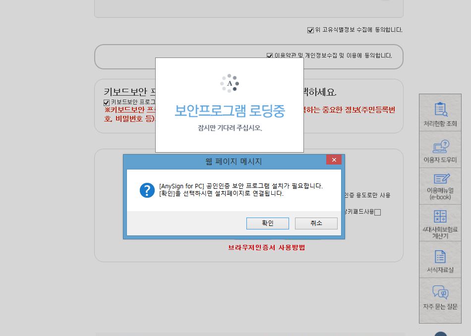 로그인 창이 진행되기 위해서는 보안프로그램과 키보드 프로그램들을 다운로드 받아야 하죠.